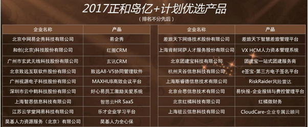 2017年9月,億+計劃二期啟動,462件企業(yè)服務(wù)產(chǎn)品報名參與。經(jīng)過嚴格的資料審核和面對面的廠商訪談,40件產(chǎn)品進入終審。聯(lián)盟邀請了企業(yè)服務(wù)領(lǐng)域知名投資人、行業(yè)專家和專業(yè)媒體等組成終審委員會,圍繞“創(chuàng)新性、專業(yè)性、適用性”三要素,根據(jù)“企業(yè)實力、產(chǎn)品實力、技術(shù)能力、客戶服務(wù)能力、需求響應(yīng)能力”五個評價維度進行了綜合評估,最終評選出紅圈CRM、致遠A8-V5協(xié)同管理軟件、視源股份MAXHUB高效會議平臺、易企秀云學(xué)堂樂才企業(yè)學(xué)習(xí)平臺等17件優(yōu)秀產(chǎn)品。