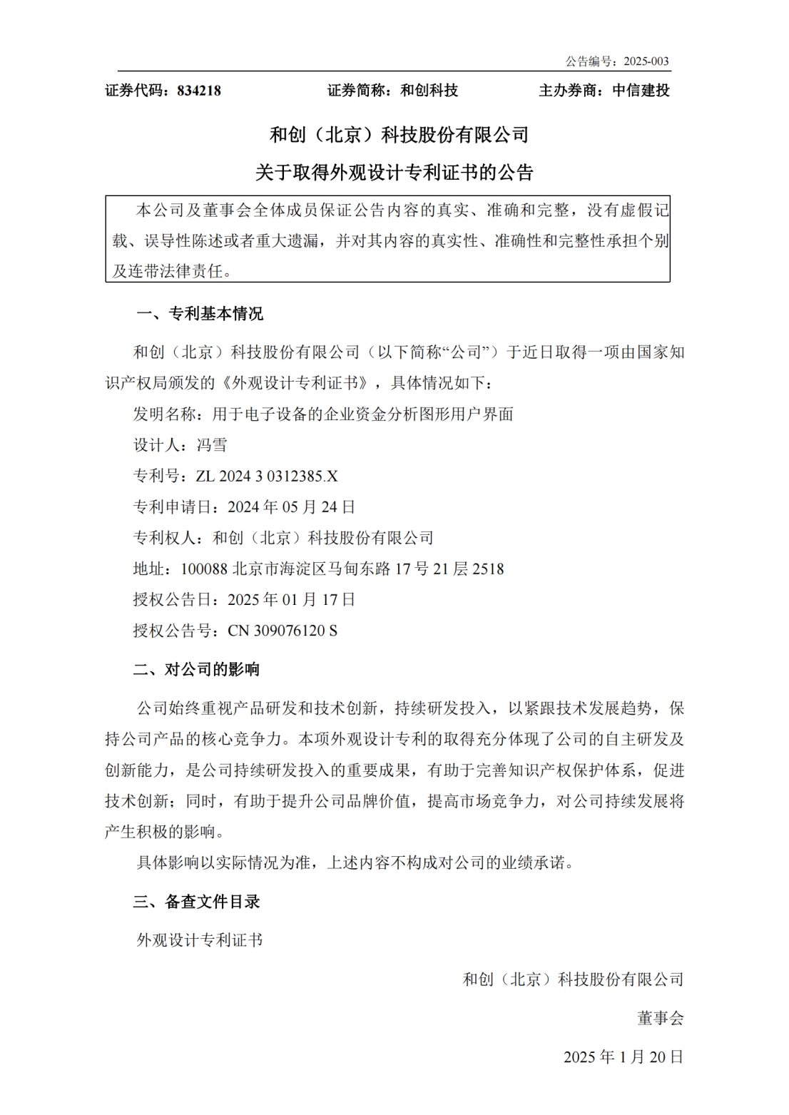 在2025年的新春之際,和創科技以其卓越的創新能力和深厚的技術底蘊,迎來了科技研發的新里程碑——連續榮獲兩項最新專利認證,分別是外觀發明專利《用于電子設備的企業資金分析圖形用戶界面》以及發明專利《一種數據處理方法、裝置及電子設備》。這兩項專利的取得,不僅標志著和創科技在數字化資金管理領域的又一次重大突破,更為廣大工程企業用戶帶來了更為高效、便捷的資金管理解決方案。
