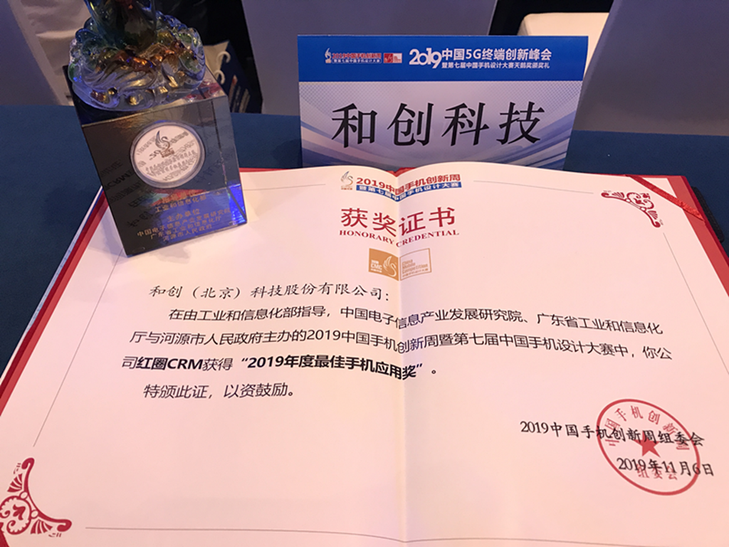 > 資源中心 > 官方博客 > 公司新聞 > 紅圈CRM榮獲2019中國(guó)5G終端創(chuàng)新峰會(huì)“2019最佳手機(jī)應(yīng)用天鵝獎(jiǎng)”
