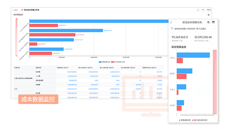 成本數據監(jiān)控:使成本計劃的執(zhí)行始終處于預算監(jiān)控之下,防止成本失控