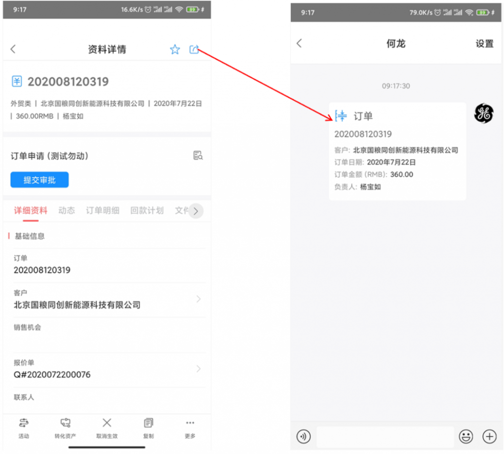 - 手機端可分享業(yè)務數(shù)據(jù)至IM,接受方可直接打開,但需要校驗數(shù)據(jù)權限