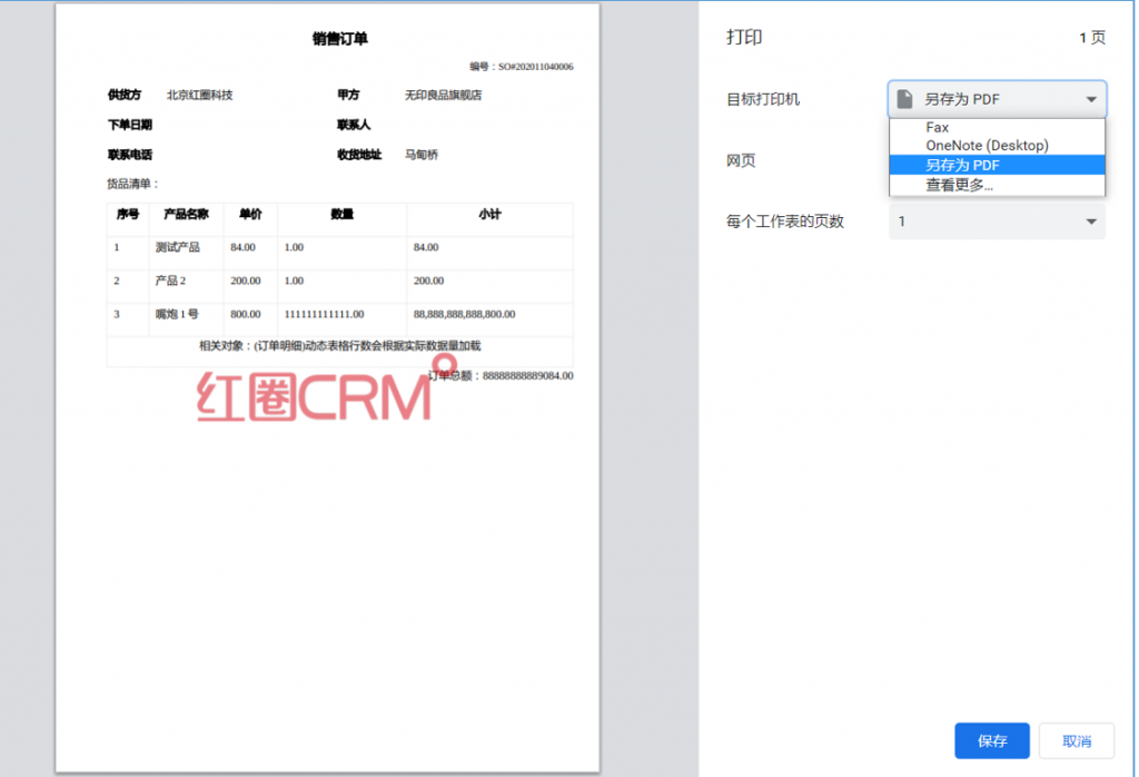 點擊打印后,如果保存為PDF文件,則文件帶水印