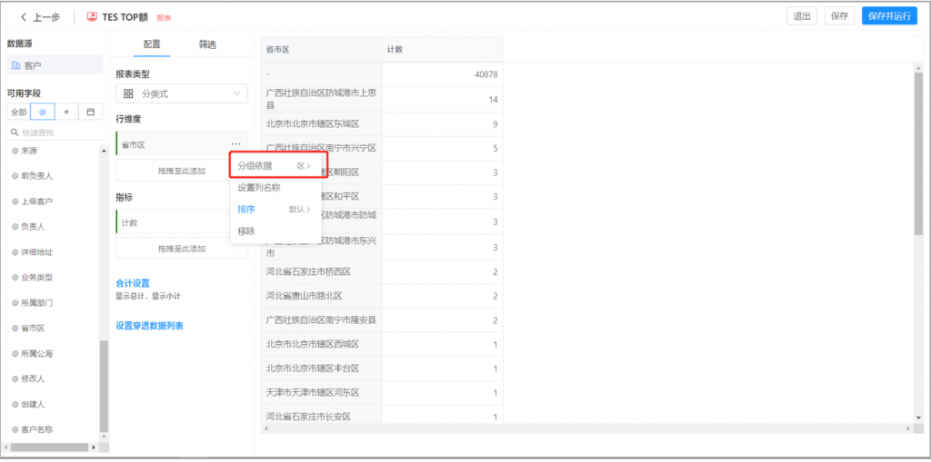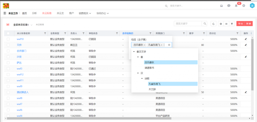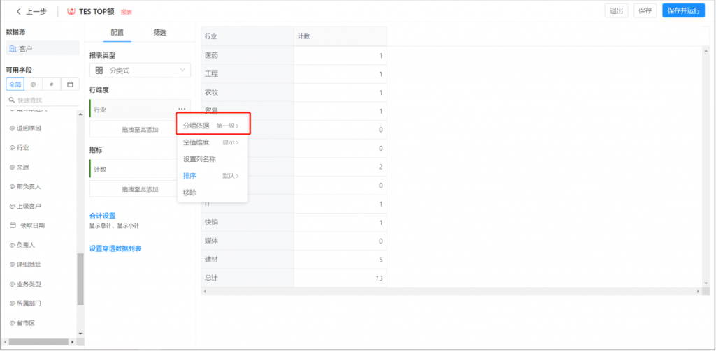2)選項值集的單選字段,在作為維度時,可以分層級統(tǒng)計,類似部門;比如選擇一級進(jìn)行查看,每行維度會匯總當(dāng)前一級選項以及所有下級選項的數(shù)據(jù)