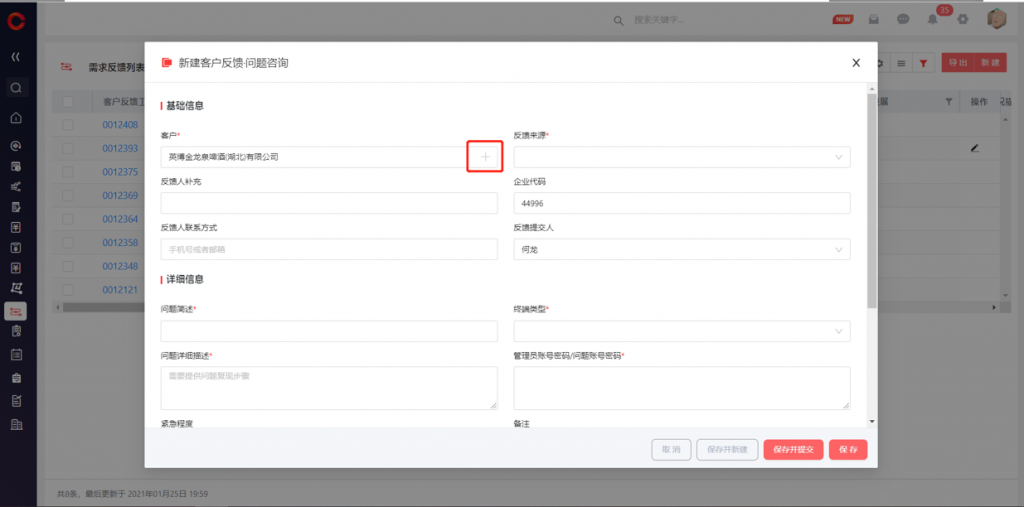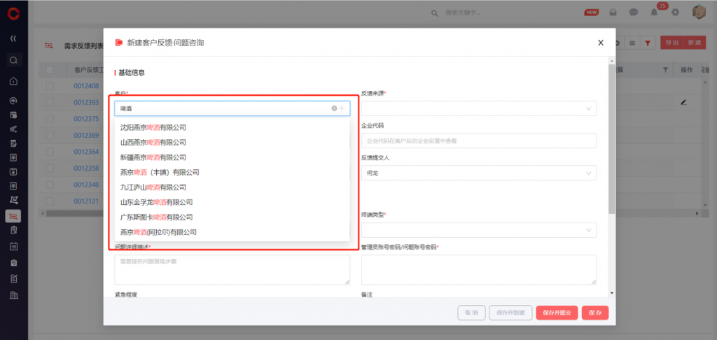 1)新建編輯數(shù)據(jù)時,查找關(guān)系字段支持快速搜索和選擇,免除進(jìn)入彈窗頁的多級操作,直接通過主標(biāo)題查找完成選擇,提高數(shù)據(jù)錄入效率