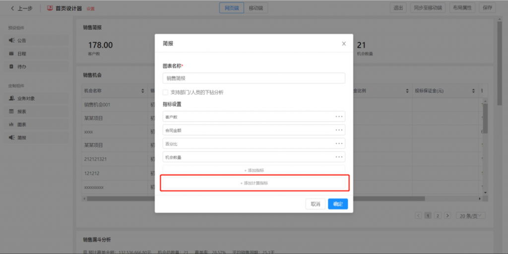 計(jì)算指標(biāo):首頁簡(jiǎn)報(bào)組件,可支持指標(biāo)間進(jìn)行基礎(chǔ)四則運(yùn)算,生成計(jì)算指標(biāo)