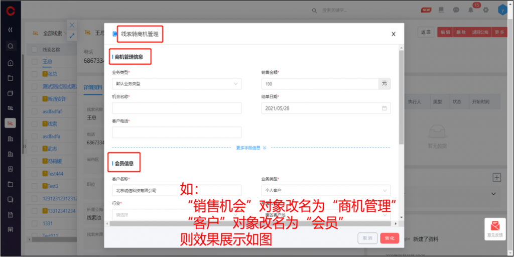 線索轉(zhuǎn)化頁面對(duì)象名稱變化