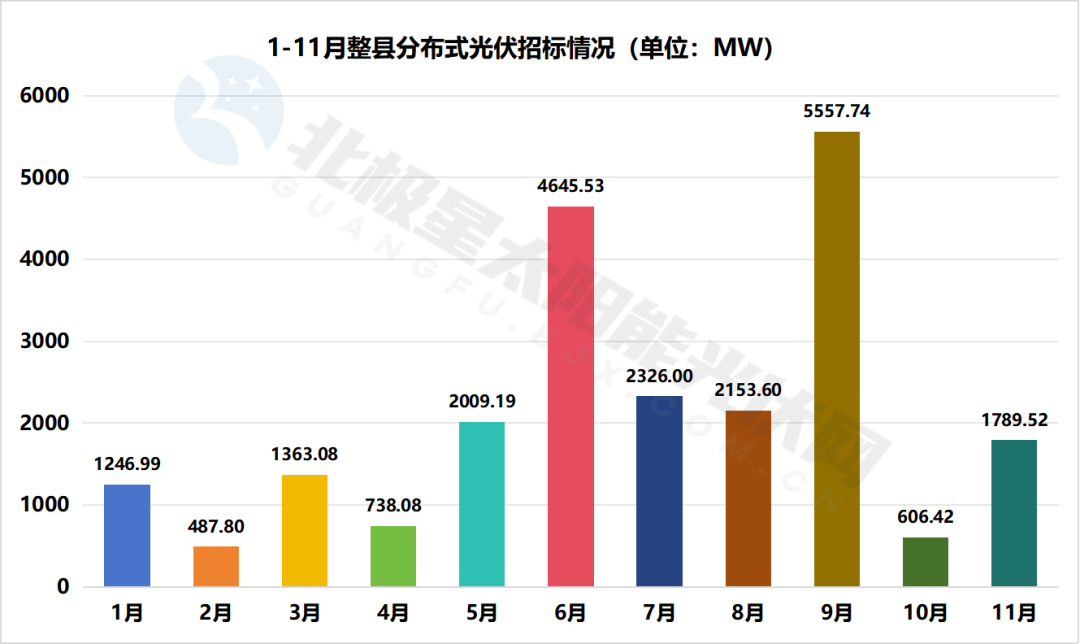 與之對應的是,今年各整縣光伏EPC招投標在大量上馬,據北極星太陽光伏網不完全統計:1-11月各地公開的整縣EPC招標規模300余個,合計規模約23GW,基本覆蓋了大部分省份。