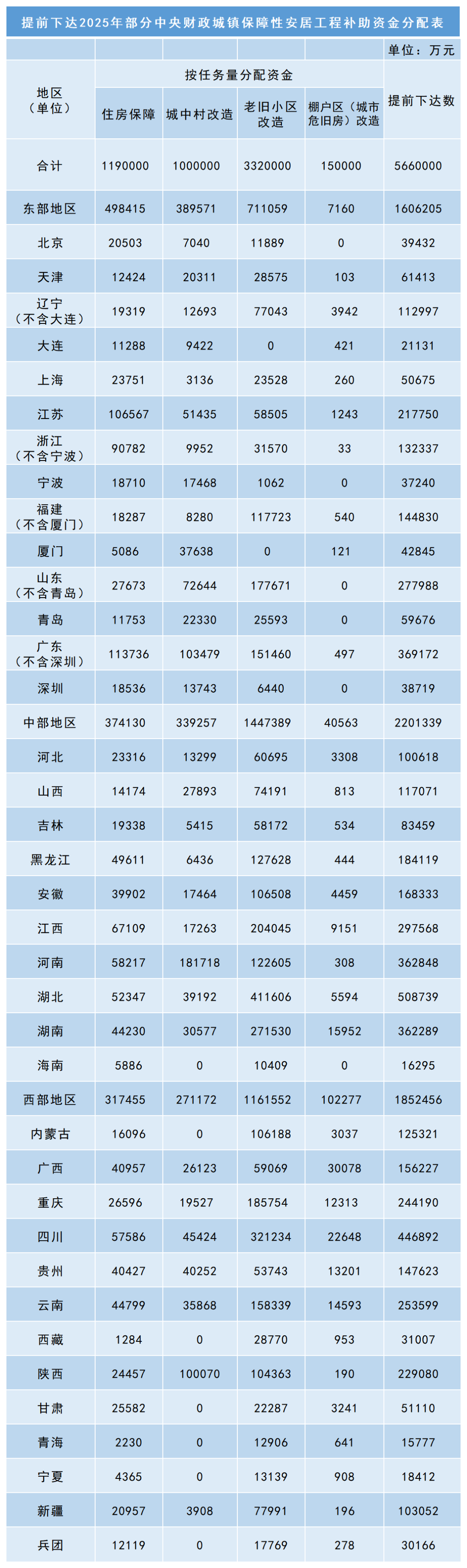 提前下達2025年部分中央財政城鎮保障性安居工程補助資金分配表