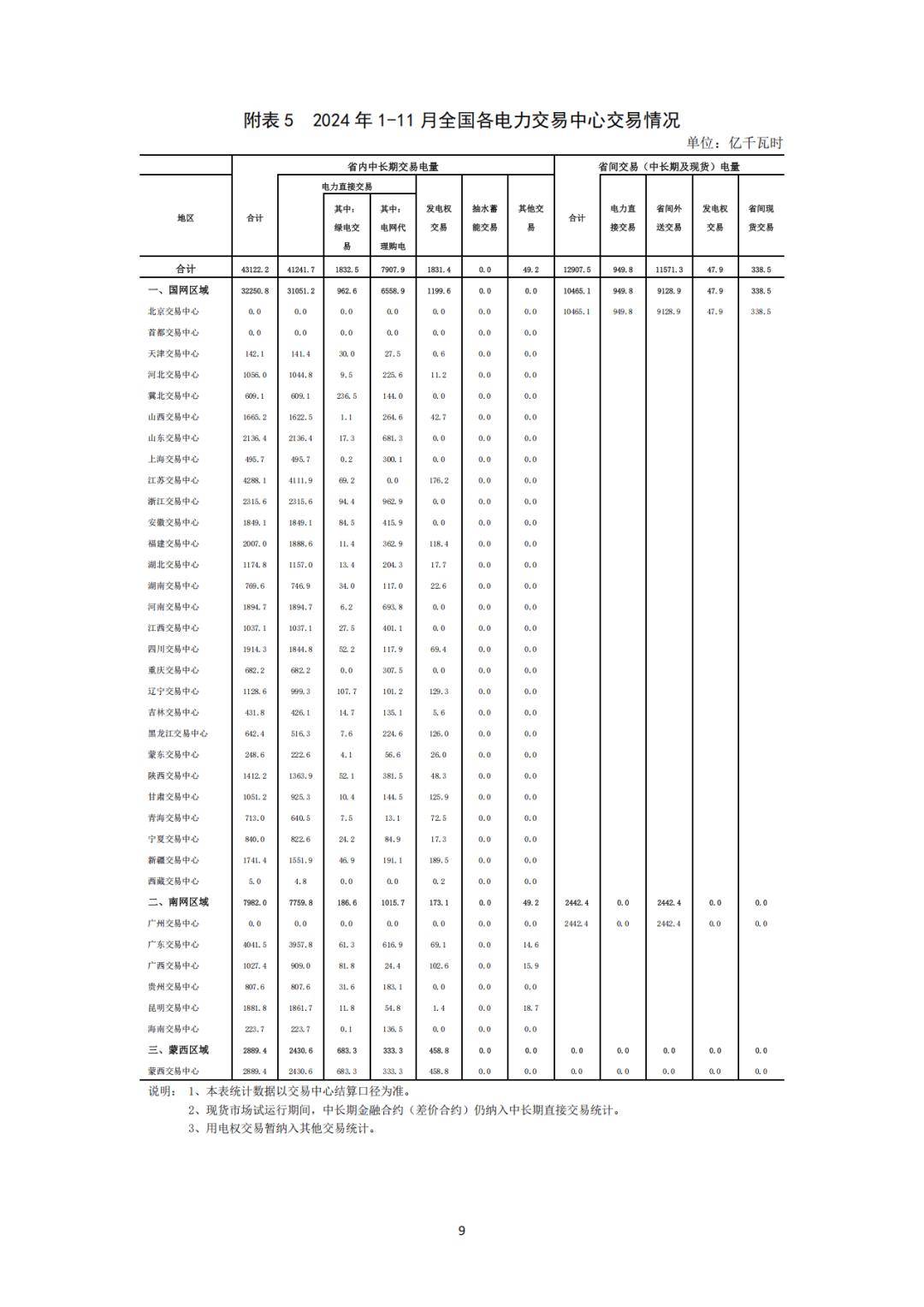 分區(qū)域來(lái)看,1-11月,國(guó)家電網(wǎng)區(qū)域各電力交易中心累計(jì)組織完成市場(chǎng)交易電量42715.9億千瓦時(shí),同比增長(zhǎng)7.1%,其中北京電力交易中心組織完成省間交易電量合計(jì)為10465.1億千瓦時(shí);南方電網(wǎng)區(qū)域各電力交易中心累計(jì)組織完成市場(chǎng)交易電量10424.4億千瓦時(shí),同比增長(zhǎng)23.2%,其中廣州電力交易中心組織完成省間交易電量合計(jì)為2442.4億千瓦時(shí);內(nèi)蒙古電力交易中心累計(jì)組織完成市場(chǎng)交易電量2889.4億千瓦時(shí),同比增長(zhǎng)7.4%。
