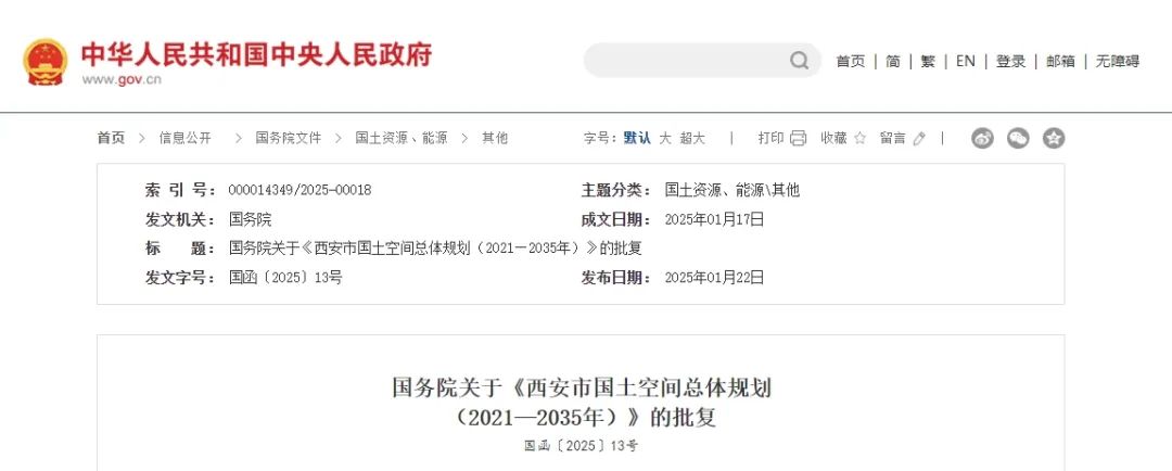 國務院關于《西安市國土空間總體規劃(2021—2035年)》的批復