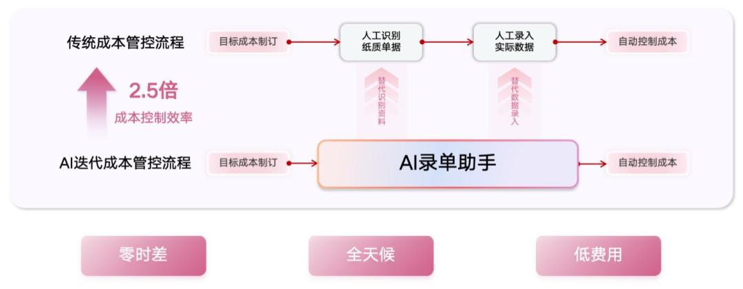 借助AI錄單助手,企業在保證最低管理成本的同時,建立起穩健的成本鏈條,實現高效的成本管理與項目推進,不僅能夠提升數據質量,也能極大提升員工的工作效率與幸福度。