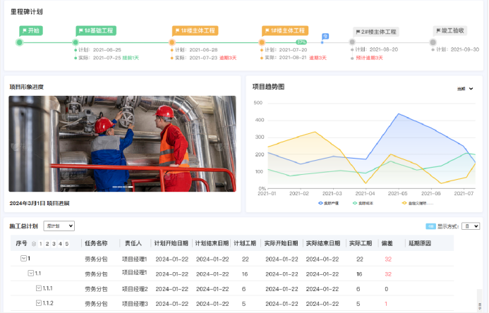 在現(xiàn)場管理維度,系統(tǒng)支持通過移動智能終端,由工作人員實時采集現(xiàn)場情況并上傳,使管理者能夠遠(yuǎn)程在線管理,實時了解工程現(xiàn)狀。結(jié)合安全質(zhì)量管理模塊,形成了對現(xiàn)場人員、機(jī)械、材料、工藝、環(huán)境的全方位、標(biāo)準(zhǔn)化管理,使得現(xiàn)場情況真實可控。物資與現(xiàn)場管理的數(shù)字化貫通,確保了從采購計劃到材料消耗,從施工指令到作業(yè)反饋的全鏈條透明化。