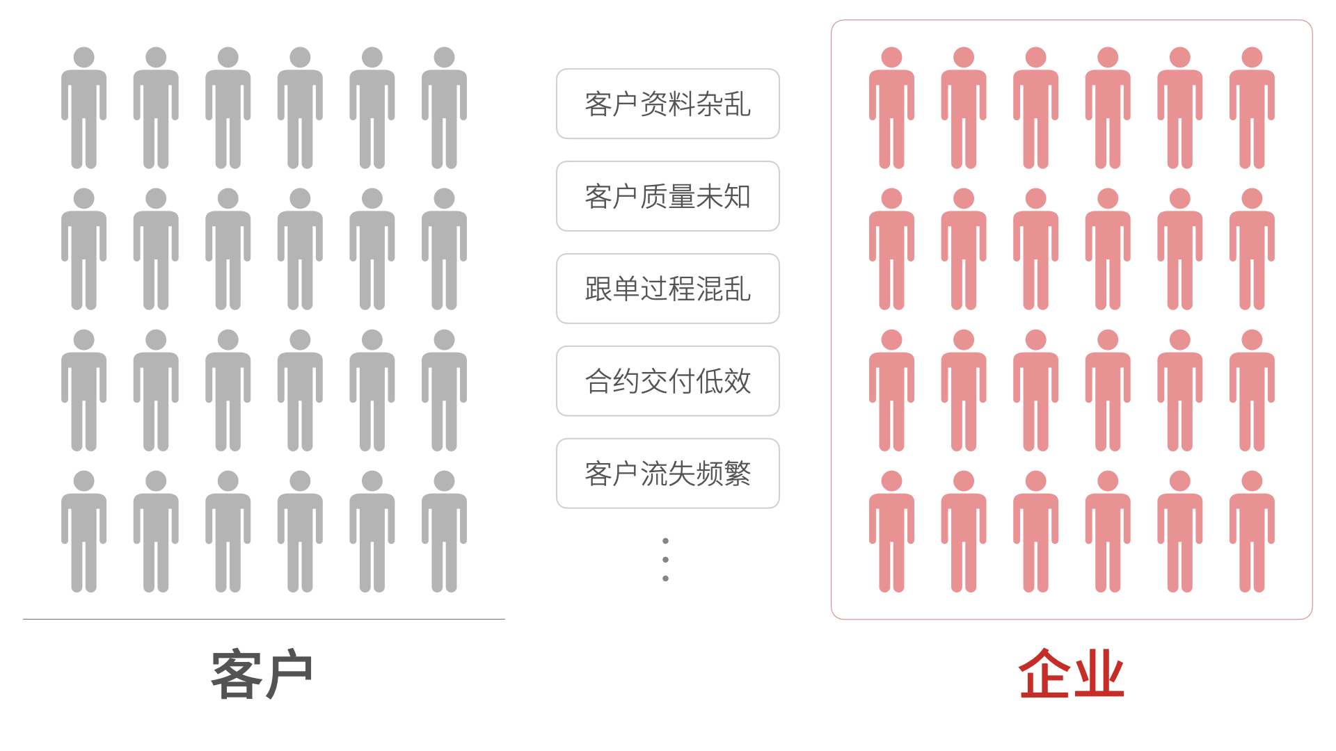 但是對于絕大多數(shù)企業(yè)而言,他們面對的是數(shù)以萬記的企業(yè)或個人客戶,如果沒有系統(tǒng)的輔助,往往會導(dǎo)致客戶資料雜亂、客戶質(zhì)量未知、跟單過程混亂、合約交付低效、客戶流失頻繁等企業(yè)經(jīng)營困境,自然無法實現(xiàn)收入預(yù)期的最大化。而且企業(yè)內(nèi)部還有分屬不同部門的千百名員工,一個客戶從線索到回款的全生命流程往往需要各部門數(shù)名員工的協(xié)同工作,如果沒有系統(tǒng)化的流程管理和數(shù)字化的決策輔助,也無法提高收入預(yù)期的置信度。