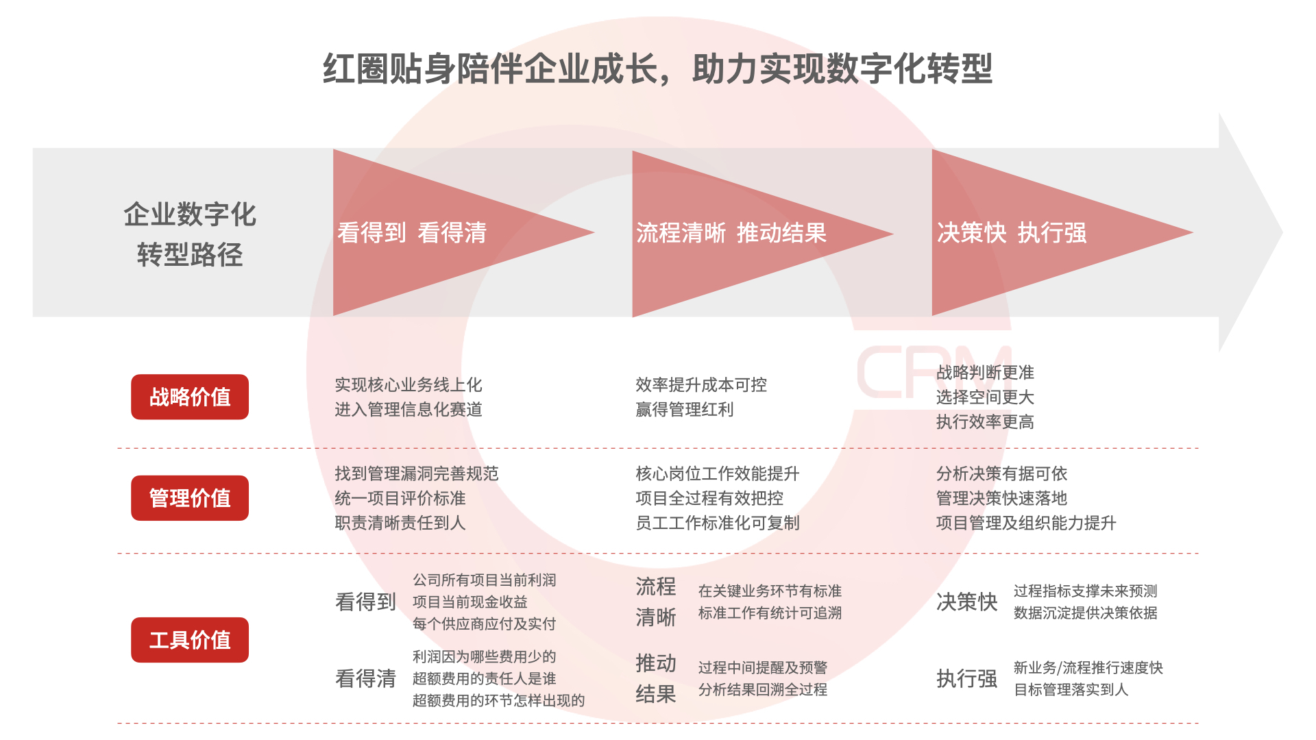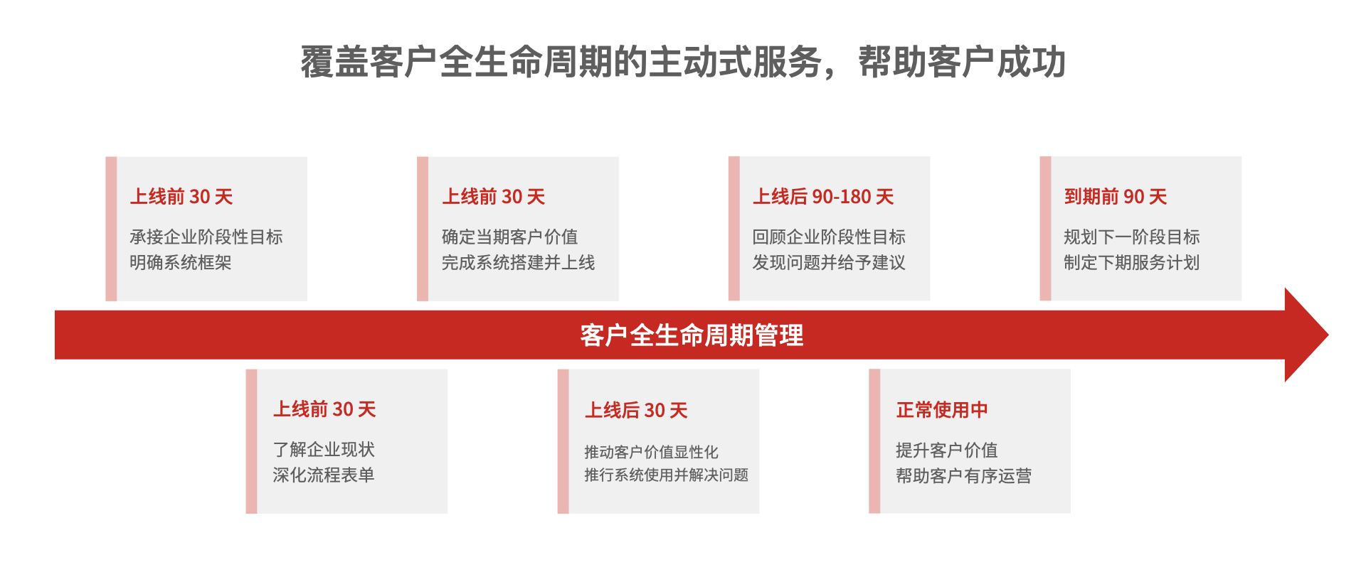 以客戶為中心的全生命周期管理,以 5-10 年企業(yè)經(jīng)營目標(biāo)為導(dǎo)向的階段性價值兌現(xiàn),陪伴企業(yè)成長,助力企業(yè)實(shí)現(xiàn)數(shù)字化轉(zhuǎn)型